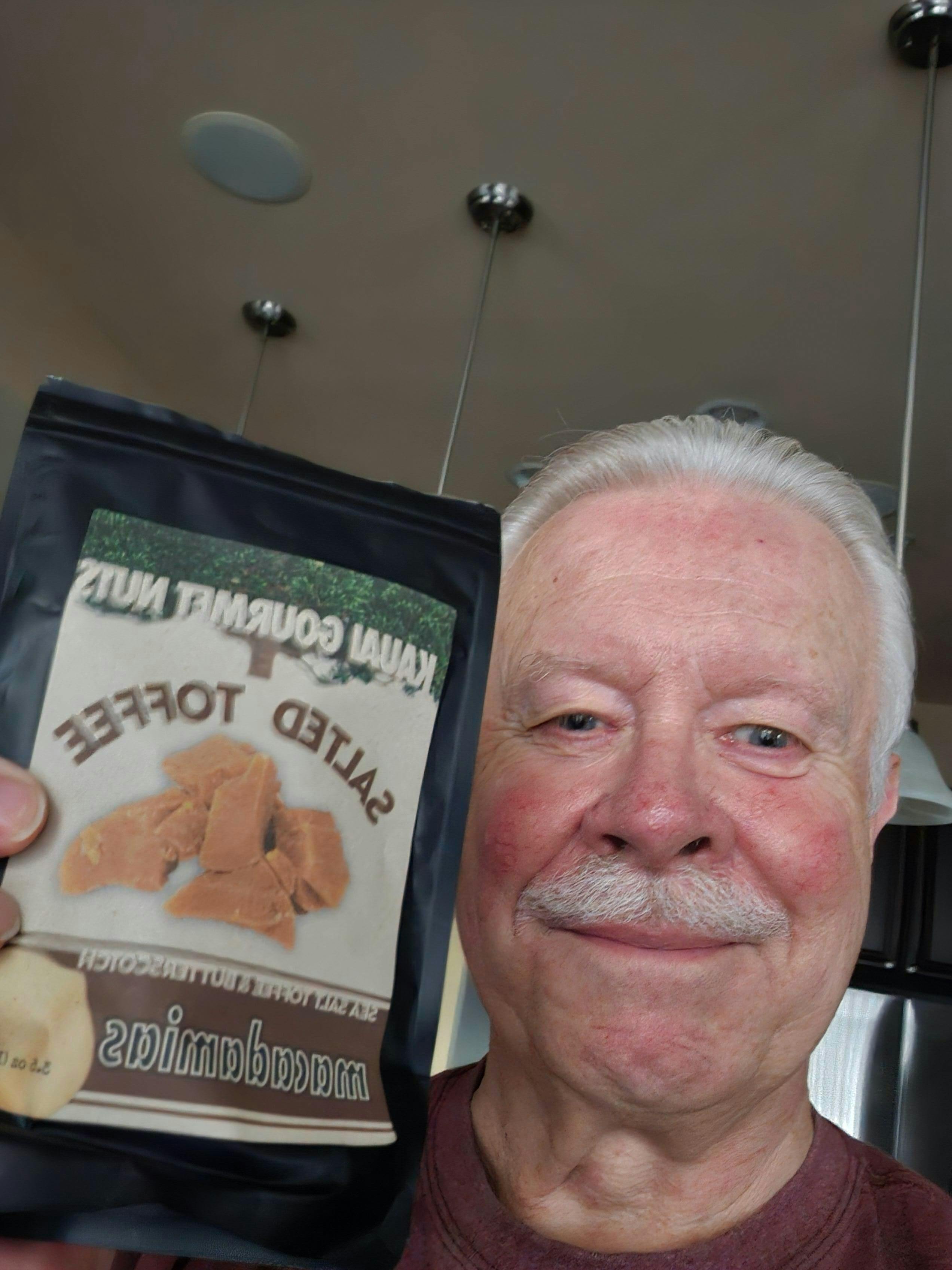Our top seller. Salted Toffee Macadamias are glazed in butterscotch and fine Hawaiian sea salt then sprinkled with rock salt and toffee bits. The result is a sweet and savory crunchy shell with bursts of salt and crispy toffee so delicious you have to try them to believe it. Warning: may be highly mac-dictive!